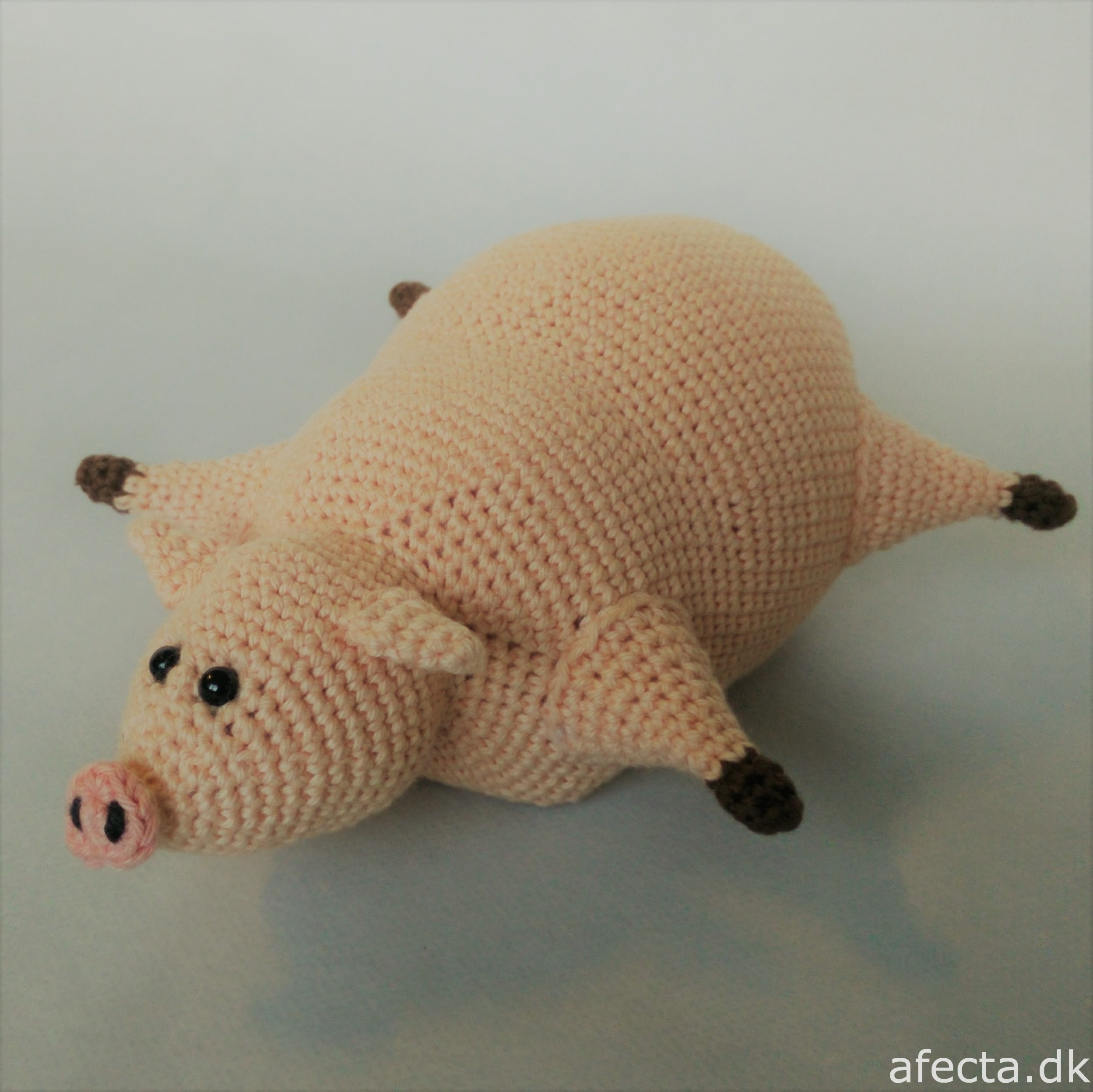 Hækleopskrift (PDF-fil) på en grissebasse, der måske har fået lidt for meget af den gode mad …